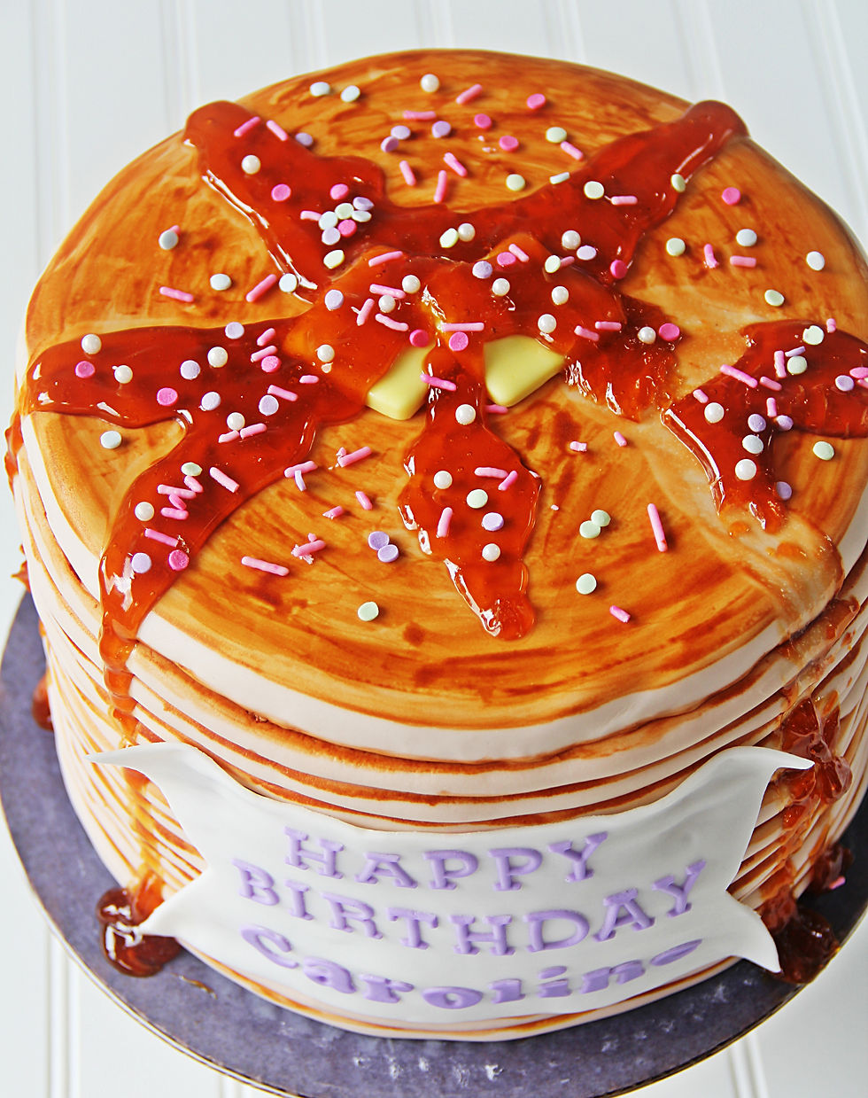 The Cake: I mean seriously!!! My friend Michelle Debowski has made some great cakes over the years but this is hands down the best I've seen. She created a pancake stack using fondant and food coloring. I have no ideas what the syrup is made from but it's perfection!